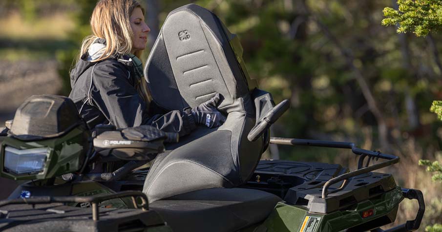 - Armazenamento seco dianteiro 5 gal (18,9 L) compatível com Lock & Ride, armazenamento traseiro 6 gal (23 L), banco de passageiro removível sem ferramentas