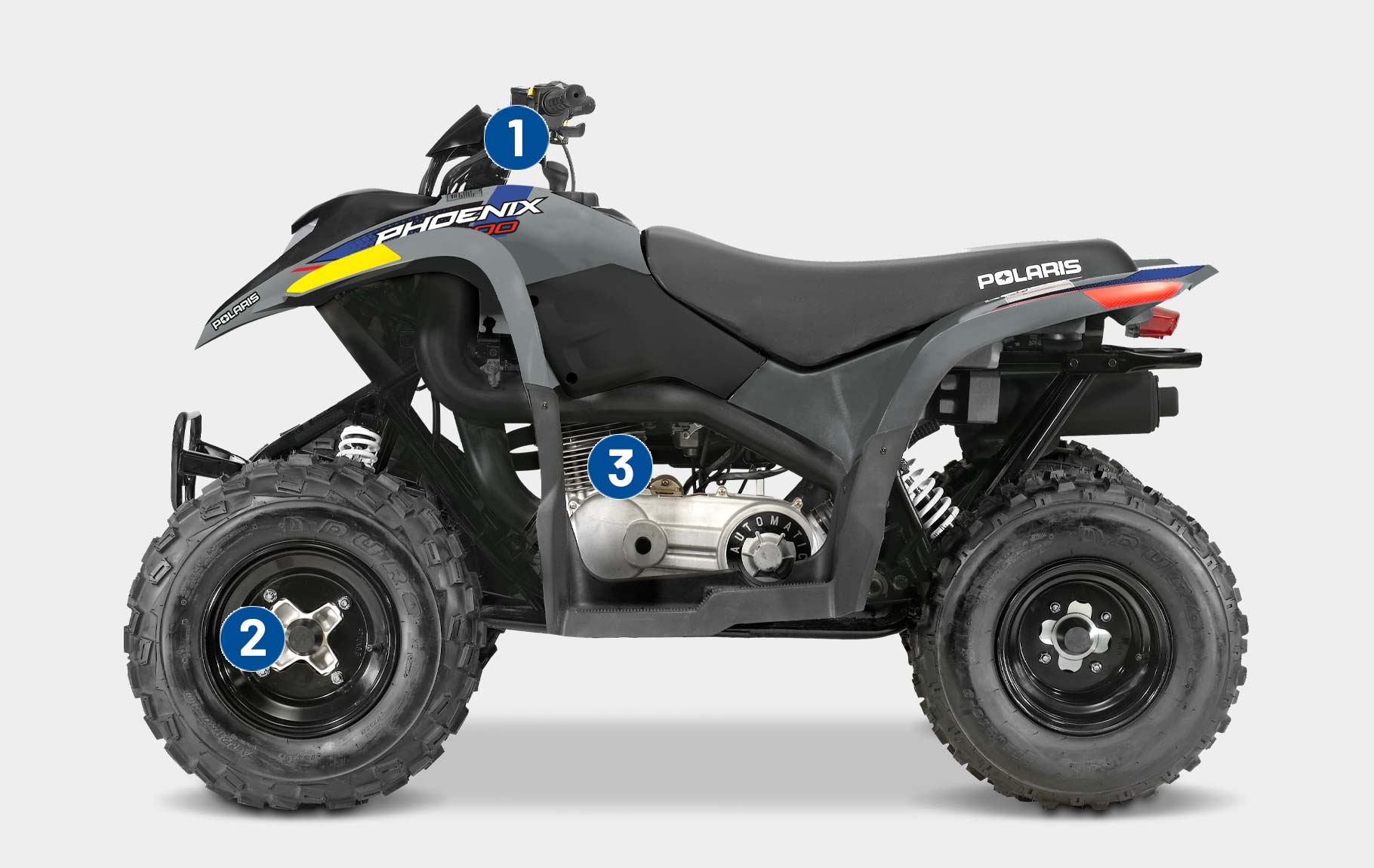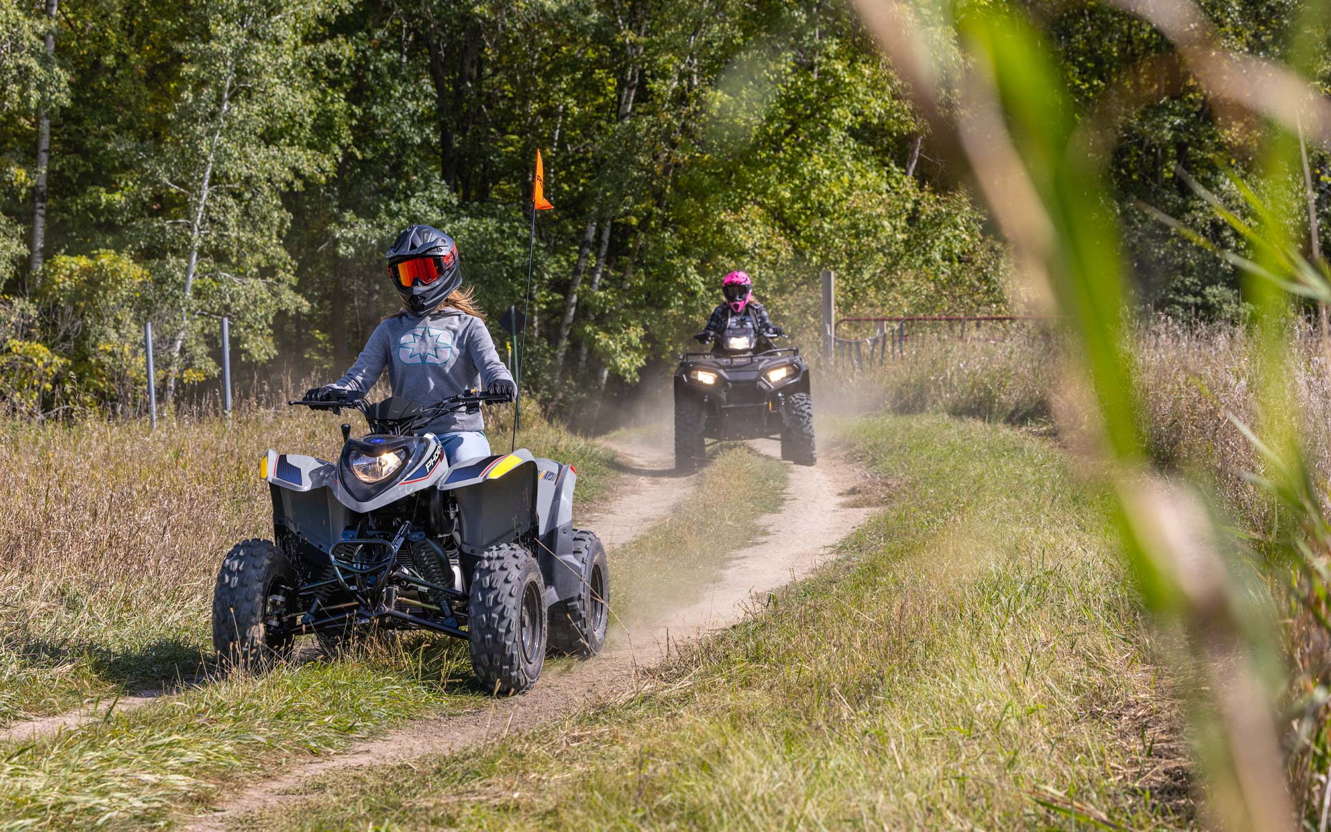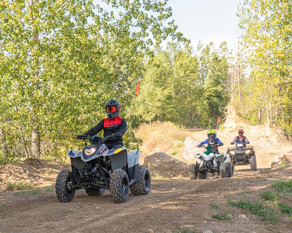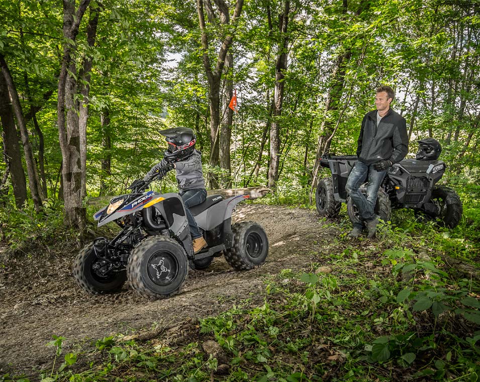 Com um motor a 4 tempos de 196 cc e limitador de velocidade facilmente ajustável, permite aos jovens utilizadores crescerem com o seu ATV. Fabricado para utilizadores com 14 ou mais anos de idade.